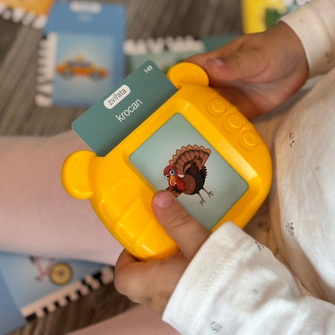 Dítě si samo vybere obrázek, který ho zaujme. Kartičku jednoduše vloží do čtečky, čímž si zároveň hravou formou trénuje jemnou motoriku.